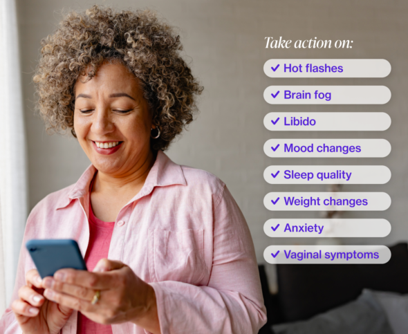 Book a visit with a board-certified menopause provider to address your top symptoms and receive labs and prescriptions as needed. Covered by insurance.